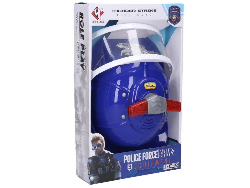 Kdo by se nechtěl stát policajtem, který pomáhá lidem při mimořádných situacích? K výbavě policie neodmyslitelně patří i zásahová helma. Tato zásahová helma za použití baterií vydává světelné a zvukové efekty.
