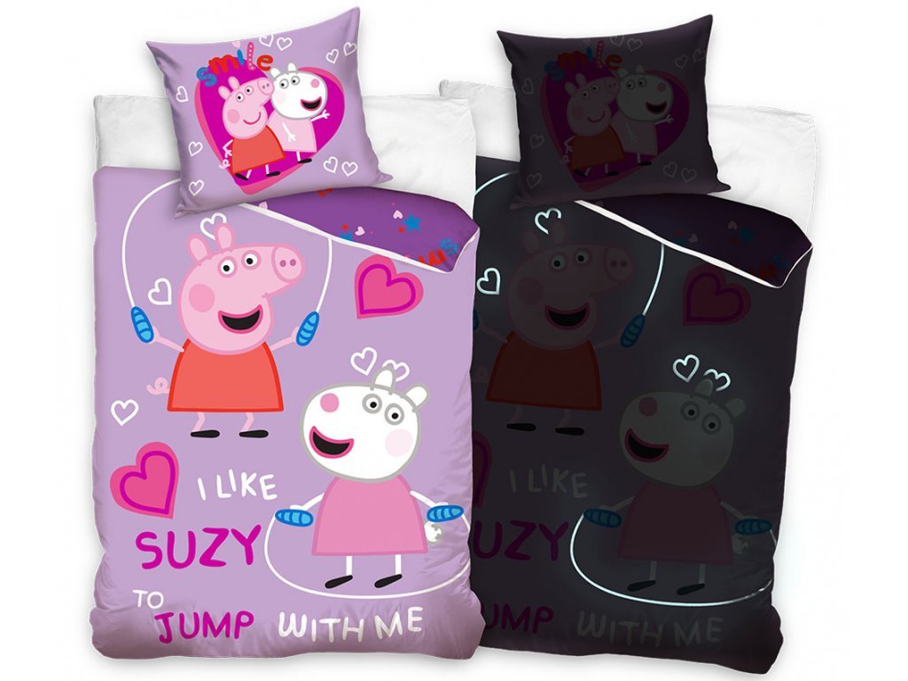 Povlečení bavlna PEPPA PIG se švihadlem svítící fialové 140x200 70x90
