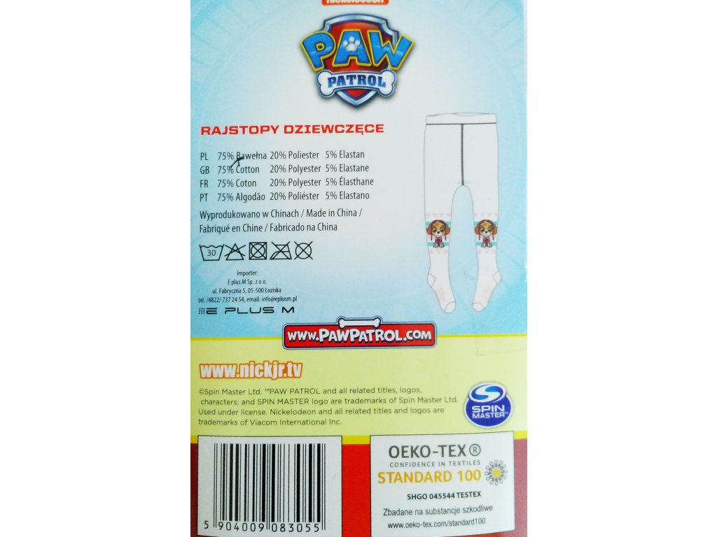 Skye z Tlapkové patroly také nosí punčocháče a má i krásné bílé pro všechny holčičky. Bílé dívčí punčocháče jsou velmi příjemné a pohodlné, krásně pružné, dobře se přizpůsobí postavě. Jsou vyrobeny z jemného úpletu, z měkké bavlněné směsi. Výrobek vlastní certifikát OEKO-TEX standard 100 - mezinárodní testovací a certifikační systém pro textilie, vyráběné pouze ze zdravotně nezávadných materiálů.