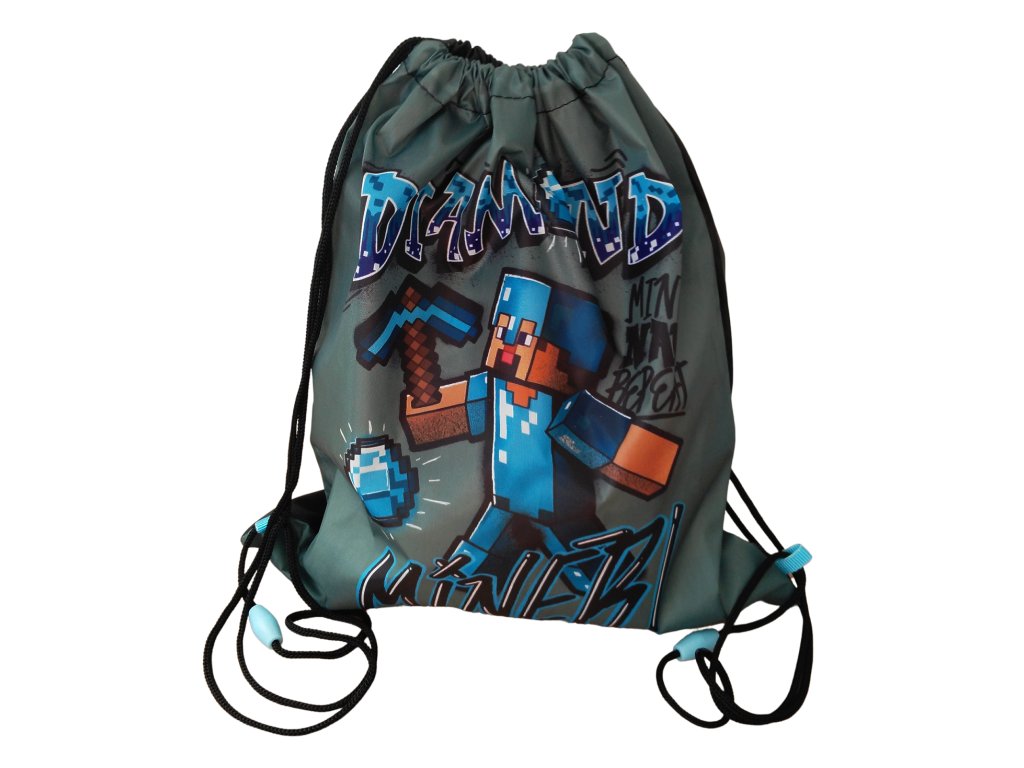 Pytlík na obuv MINECRAFT diamond miner šedočerný
