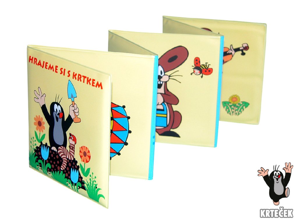 Rozkládací leporelo s různými obrázky Krtečka zaujmou miminko na první pohled, ilustrace je velmi povedená s pěknými a sytými barvami. Hračka je vyrobena z nezávadného materiálu, takže nevadí, když mrňous knížku ochutná.