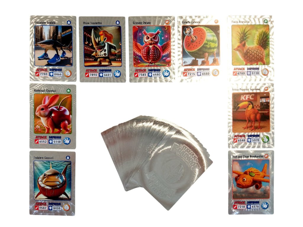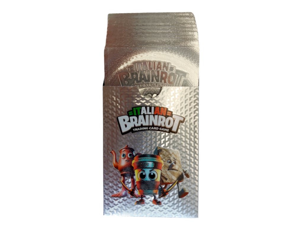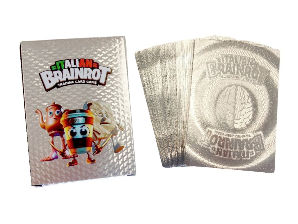 Design postaviček zůstává věrný bláznivému a zábavnému stylu Brainrot, ale díky stříbrnému lesku působí karty jako sběratelské trofeje. Mezi postavami najdete například roztančenou konvici, veselý kelímek kávy nebo vtipně ztvárněné italské pochoutky – vše v duchu italského humoru a nadsázky.