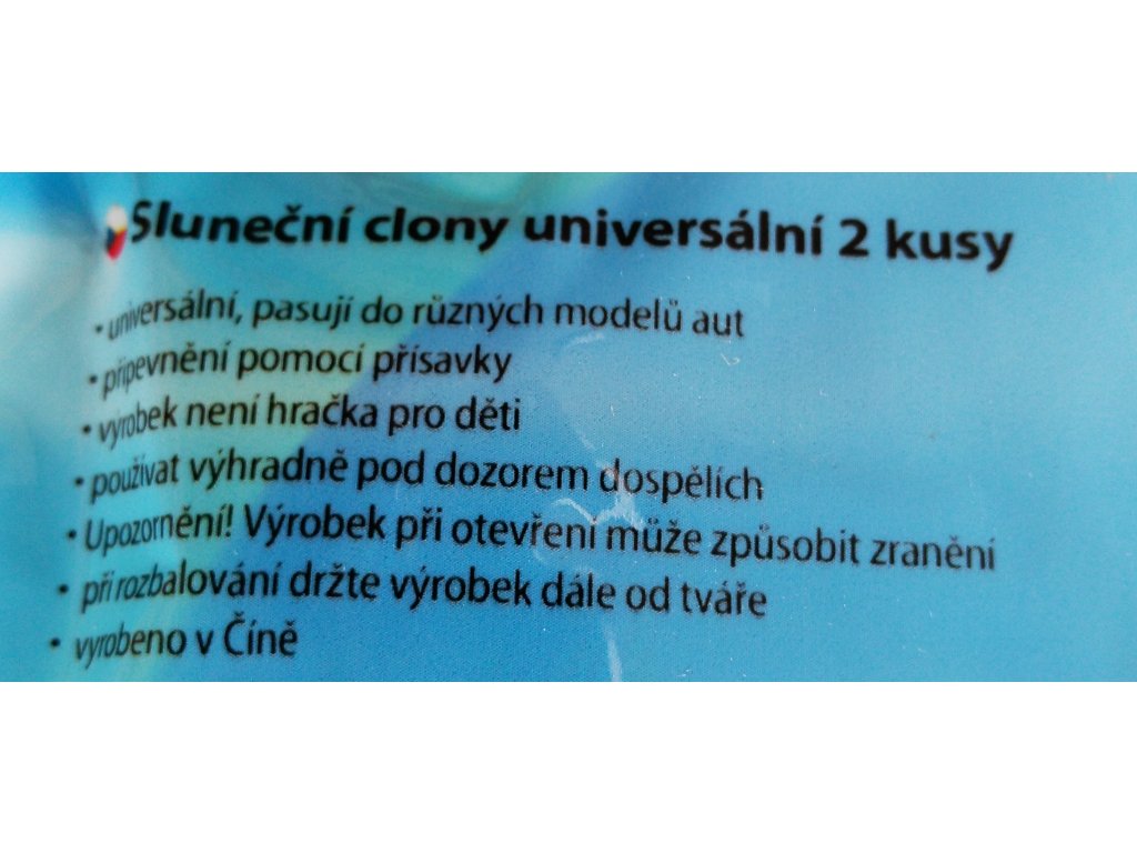 Sluneční clona zabraňuje slunečnímu záření svítit přímo do dětských očí, ale zároveň nebrání viditelnosti mimo vůz. Clony zvyšují pohodlí dětí během cesty, zabaví je, protože mohou sledovat svou oblíbenou kreslenou postavičku. Snadno se instaluje na boční nebo i zadní sklo pomocí přísavky. Vyzkoušeno a doporučeno maminkami a tatínky. Pasuje na všechny modely aut.