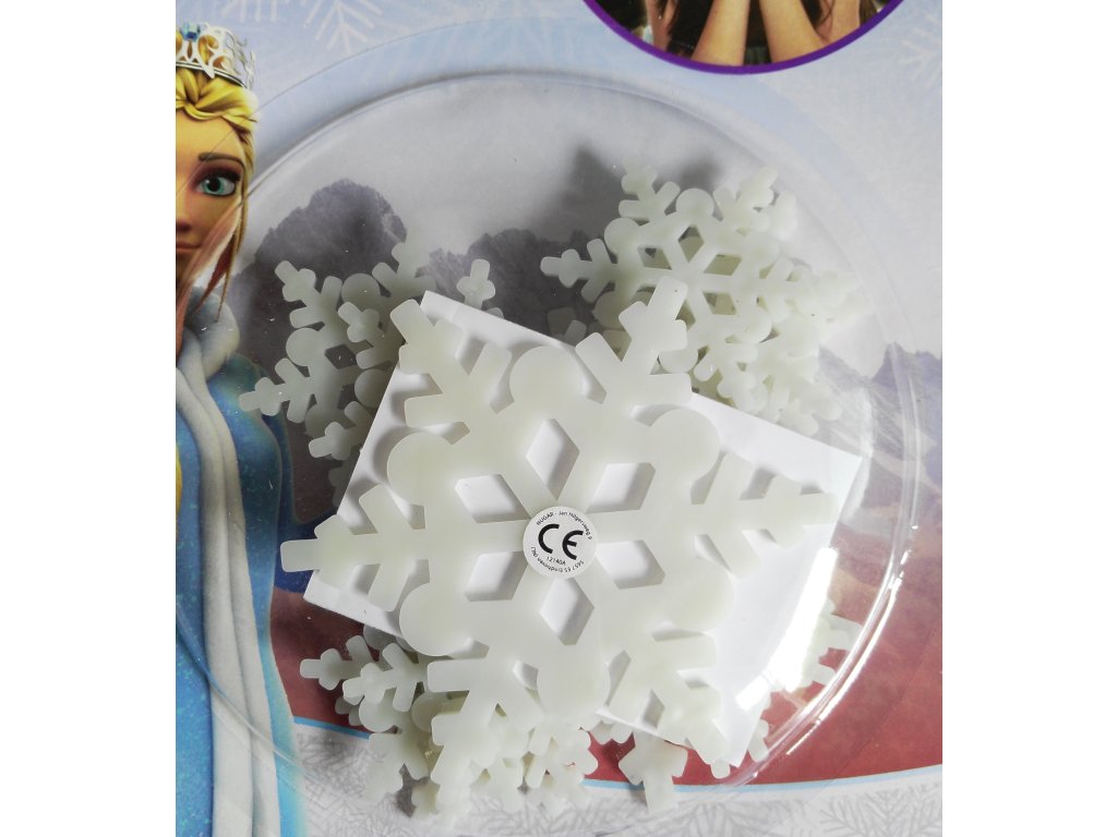 Princezna Elsa vašim dětem posílá svítící vločky až z dalekého Ledového království. Holčičí pokojíčky s nimi lehce proměníte v krajinu plnou sněhu a prožívání kouzelného příběhu se stane rázem reálnější. Vločky stačí nalepit poblíž zdroje světla, nechat nasvítit a ve tmě budou zářit! Děti budou večer spěchat do postýlek bez napomínání. Samolepky můžete aplikovat na hladké čisté povrchy stěn, dveří, lampiček, na okno. Přes den vločky absorbují světlo, které pak ve tmě vyzařují.