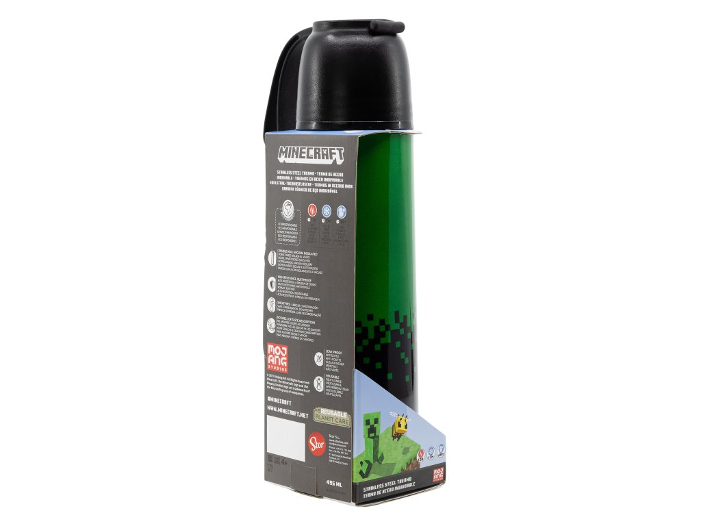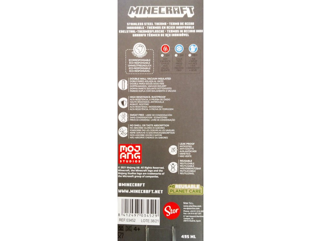 Termo láhev s originálním potiskem MINECRAFT a s objemem 495ml. Láhev má dvojitý vakuový plášť, který spolehlivě udrží stabilní teplotu nápoje. Chlazené nápoje až 13 hodin, horké nápoje až 12 hodin. Rozměry láhve: 248 mm x 85 mm. Nerezová lahev má šroubovací uzávěr a silikonové poutko.