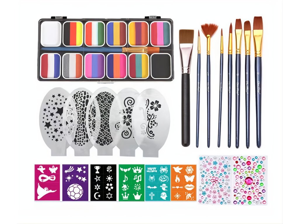 Sada obsahuje 35 kusů, které zaručí hodiny zábavy a kreativity. Ideální jako dárek nebo výbava na oslavy, karnevaly, školní akce či Halloweenské malování. Vše je uloženo v praktickém pouzdře pro snadné přenášení.