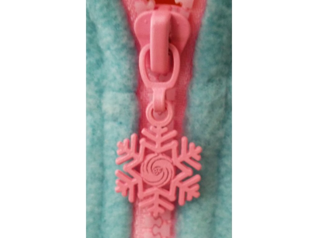Nádherná vesta, materiál hřejivý silnější fleece, motiv látkový našívaný. Zapínání na zip a na jezdci krásná ozdoba v podobě sněhové vločky. Vestička je doplněna břišními kapsami a v dolní části lze vestu stahnout olivkou.