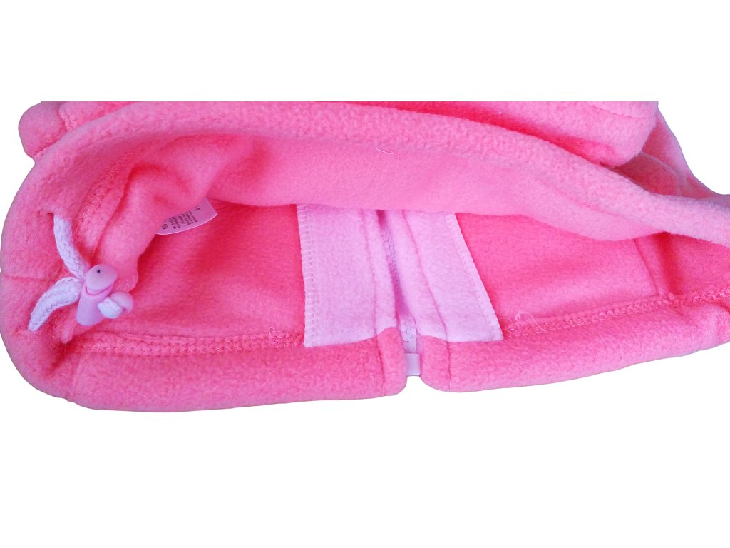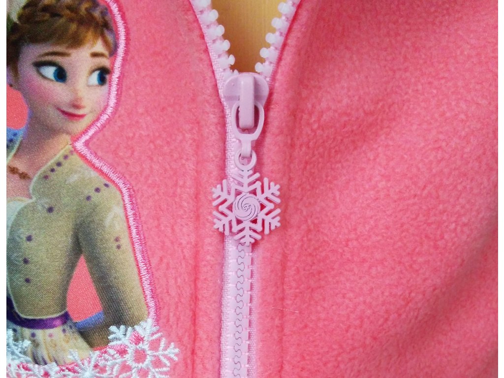 Nádherná vesta, materiál hřejivý silnější fleece, motiv látkový našívaný. Zapínání na zip a na jezdci krásná ozdoba v podobě sněhové vločky. Vestička je doplněna břišními kapsami a v dolní části lze vestu stahnout olivkou.