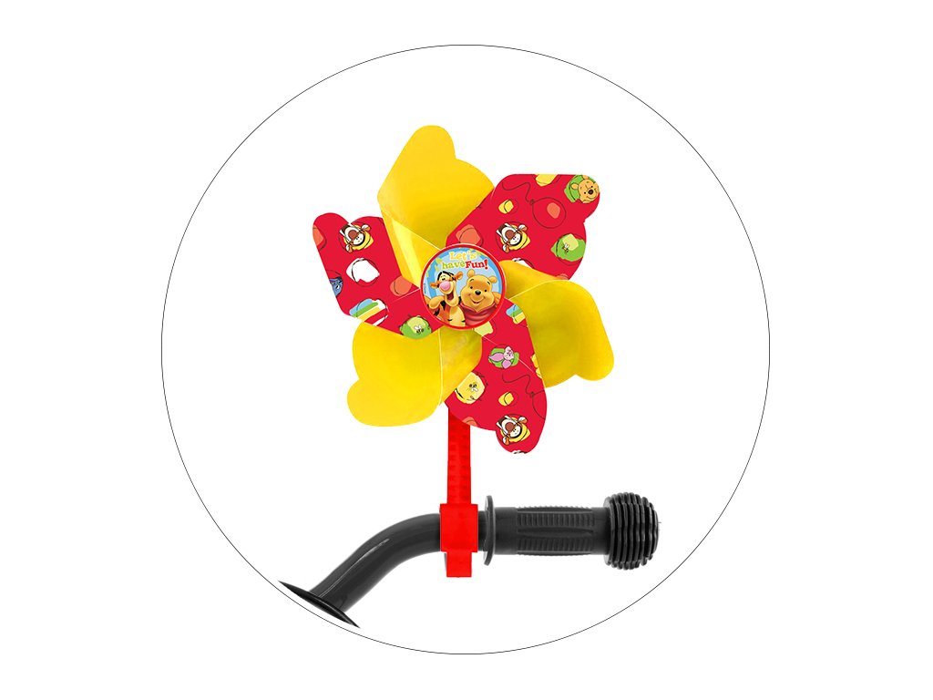 Lahůdka pro naše nejmenší závodníky - větrník s medvídkem Pú a Tygříkem je krásným doplňkem na řidítka kola, tříkolky i odrážedla. Vašim dětem udělá radost a zpříjemní jízdu, která se rázem stane zábavnější. Větrník jednoduše upevníte na řídítka pomocí klipsu a zase bez použití nářadí sundáte. Větrník je připevněný na plastové tyčce. Vrtulky jsou z bezpečného měkkého plastu s oblými hranami a děti si o ně nezraní.