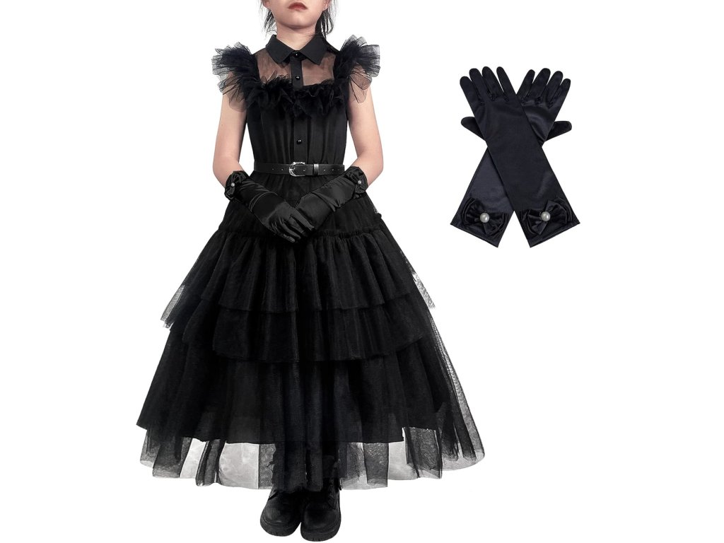 Tato sada je ideální na karneval, Halloween, tematické focení nebo jen jako originální doplněk k běžnému outfitu. Udělejte radost malým milovnicím temného stylu a dopřejte jim pocit, že jsou součástí tajemného světa Wednesday Addams.