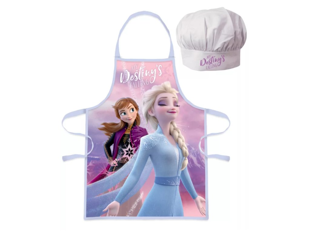 Zástěra FROZEN ANNA A ELSA set s čepicí růžovomodrá