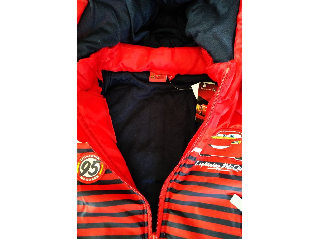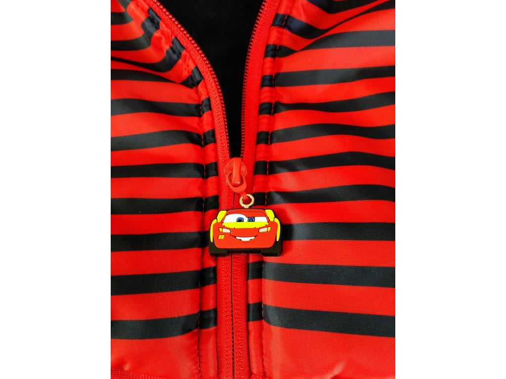 Krásná bunda vyteplená vatelínem vhodná pro podzim a mírnější zimu. Tělo i kapuca podšity látkou. Bundička má zapínání na zip, kapsy také se zapínáním na zip a ukončení jsou do pružných nápletů. Jezdec zipu je osazen krásnou gumovou ozdobou s motivem Cars. Na hrudi a jednom z rukávů jsou velmi pěkné gumové aplikace.